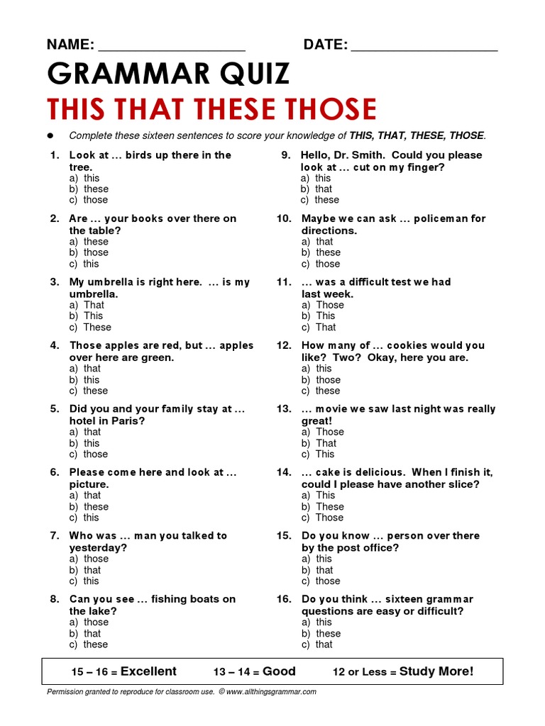 The page is new so there are not many quizzes yet, but we'll be adding. Irregular past simple, part 1; Passive voice and causative structures; The first letter of the first word in a sentence should be. This test contains grammar and vocabulary questions and your test result will help you choose a level to practise at. This includes the structure of words, phrases, clauses, sentences, and whole texts. Here is a test to see how well you know the english language grammar a typical fourth grade student should know. Even with it being forced into the curriculum, there are tons of native speakers who still can't seem to master the grammar. Bob is going to meet jane. There are millions of people who grow up learning english, and it's taught in schools all around the world. Flexible and convenient, our english quizzes work on any device. Elementary level tests classic style exercises Our free language quizzes cover grammar, usage and vocabulary for beginner, intermediate and advanced level english students.